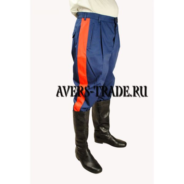 Брюки в сапоги ,п/ш синее с красным лампасом ( плотность 320 г/м2)